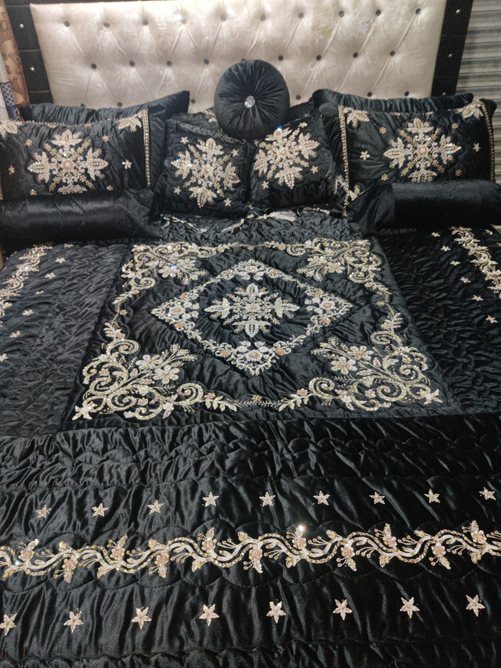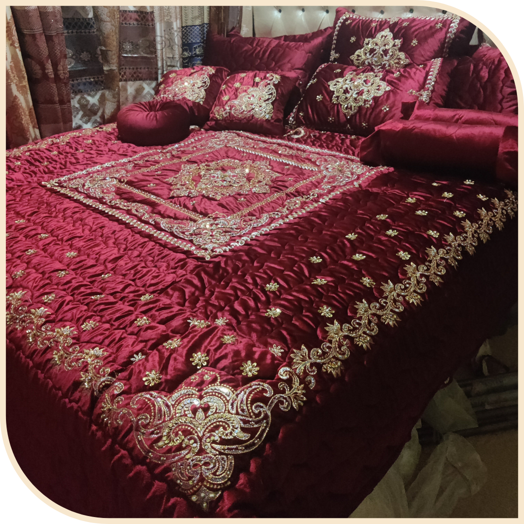 Premium bridal bedsheets, comforter and quilt sets crafted with elegant embroidery and soft, high-quality fabrics — designed for weddings, jahez, and gifts.